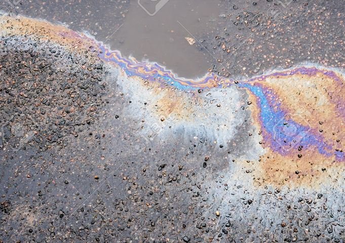 Verunreinigung der Strasse durch ausgelaufene Flüssigkeit eines Fahrzeugs.